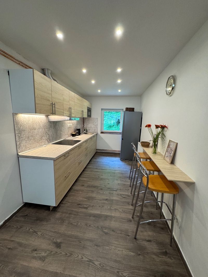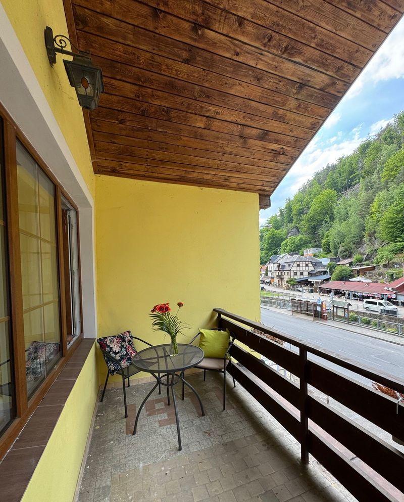 Apartmán se nachází v klidném prostředí s výhledem do zeleně a zároveň pár kroků od centra obce a zastávky autobusu a turistického vláčku Hřensko – střed.