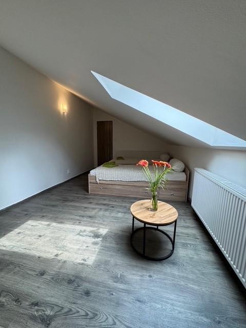 Pokoj je prostorný, světlý a díky střešnímu oknu vzdušný a příjemně prosvětlený.